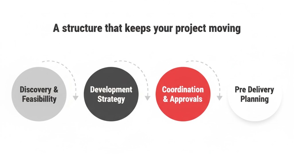 Pre Delivery Planning: We prepare for the next stage by finalizing documents, approvals, and milestones needed for a smooth transition.